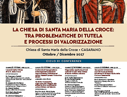 Prende il via il ciclo di conferenze dedicato alle problematiche di tutela e ai processi di valorizzazione di Santa Maria della Croce, che avrà luogo nella preziosa cornice della stessa Chiesa. Quattro gli appuntamenti previsti: – 6 ottobre, ore 19.00: I mosaici della Chiesa di Santa