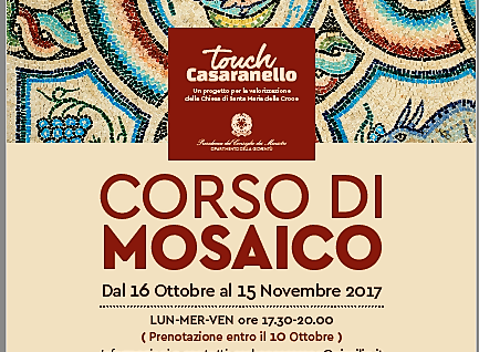 Con l’inizio dell’anno scolastico inauguriamo la nostra prima “aula” dedicata alla realizzazione di opere musive ispirate ai decori della Chiesa di Santa Maria della Croce, con il supporto della ditta ugentina G.R.arte di Giovanni Ria. Il corso si svolgerà dal 16 ottobre al 15 novembre