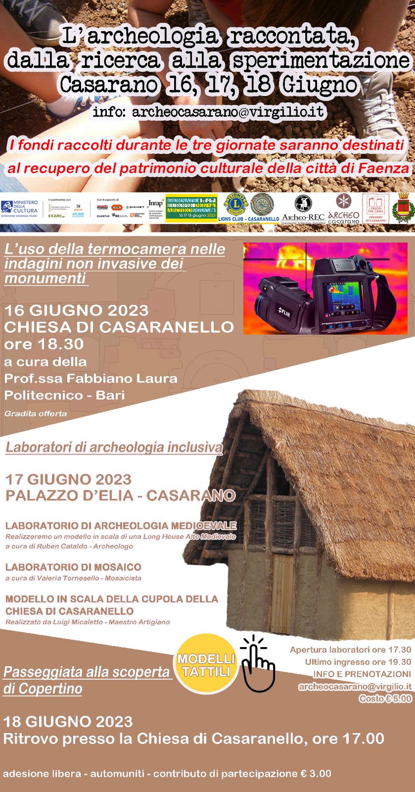 L’associazione Archeo APS promuove nei giorni 16, 17 e 18 giugno 2023 una rassegna di iniziative dedicate all’archeologia, dal titolo “L’archeologia raccontata. Dalla ricerca alla sperimentazione”.