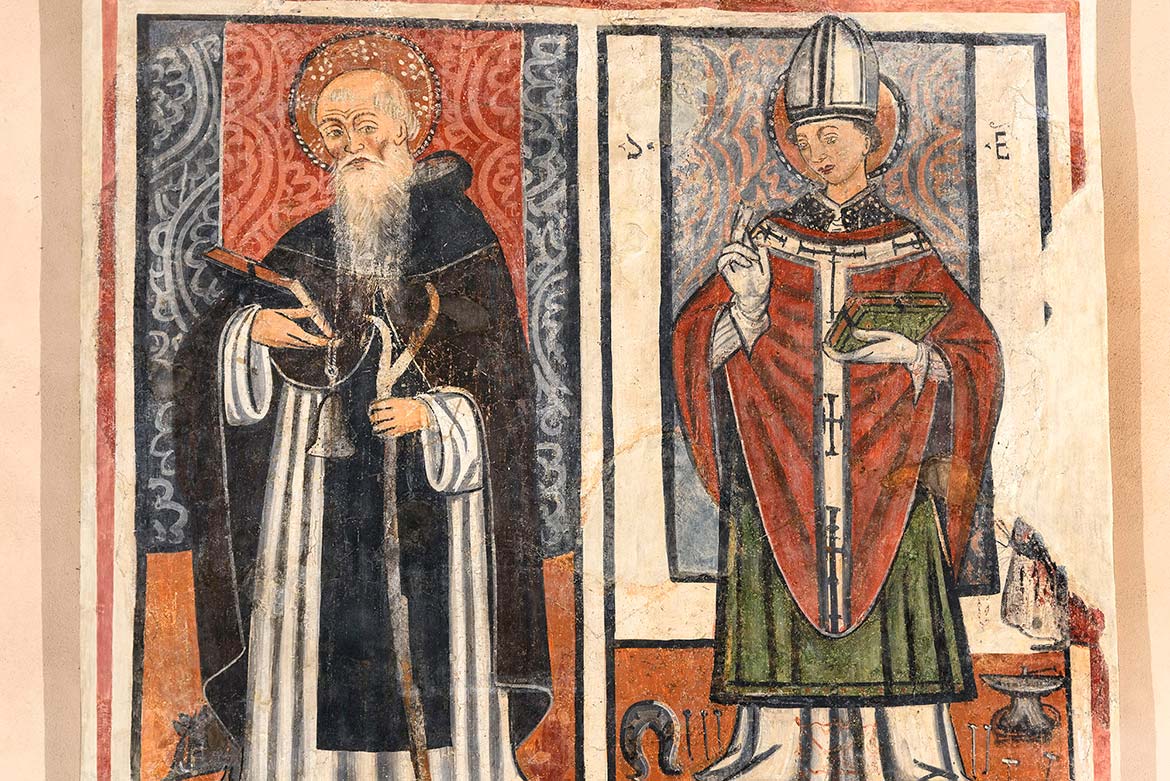 La chiesa ospita un altro piccolo dittico che oggi si trova sulla navata destra e datato precisamente al 1538. Si tratta dei Santi Eligio e Antonio Abate, raffigurati entrambi con la consueta iconografia, ovvero il primo con gli abiti vescovili e gli attrezzi da fabbro con animali “da ferrare”, mentre il secondo con abiti monacali mentre si appoggia al bastone “a tau”, con in basso un piccolo suino. Allo stesso ciclo appartiene il frammento del santo francescano posto in controfacciata, Sant’Antonio o San Francesco.