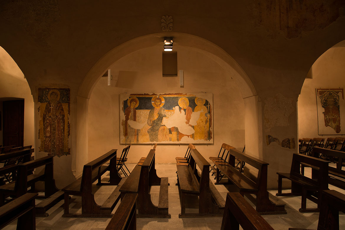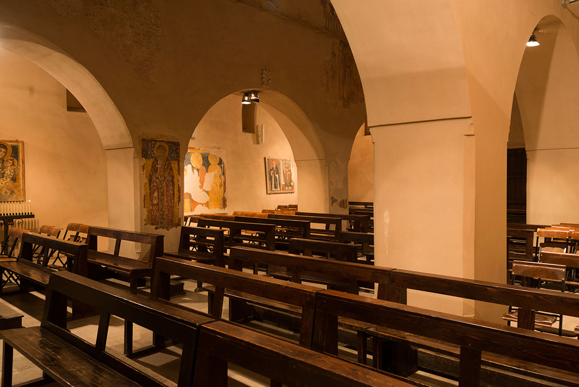 A conclusione di questo primo ciclo, non sappiamo se nell’invaso, in aggiunta ad immagini votive, si svolgesse sui muri della navata centrale, un ciclo cristologico, almeno in questo periodo. L’ipotesi non è priva di fondamento ove si consideri che, in seguito al recente restauro, è venuto alla luce, sotto il frammentario ciclo cristologico della navata centrale, uno strato precedente (Falla Castelfranchi 2004).